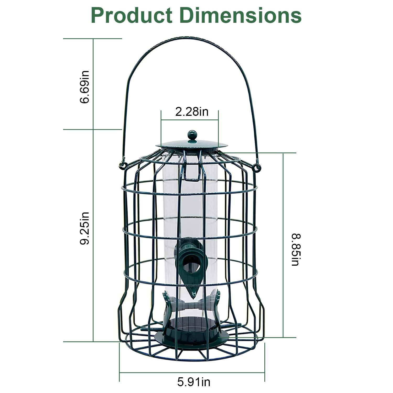 *Premium Material*:Made of sturdy metal structure and durable PC tube,can withstand different weather conditions,like rain,wind,snow,heat,frost,etc.,provide you long lasting service life. Besides,transparent tube is convenient for you to observe and refill the food.